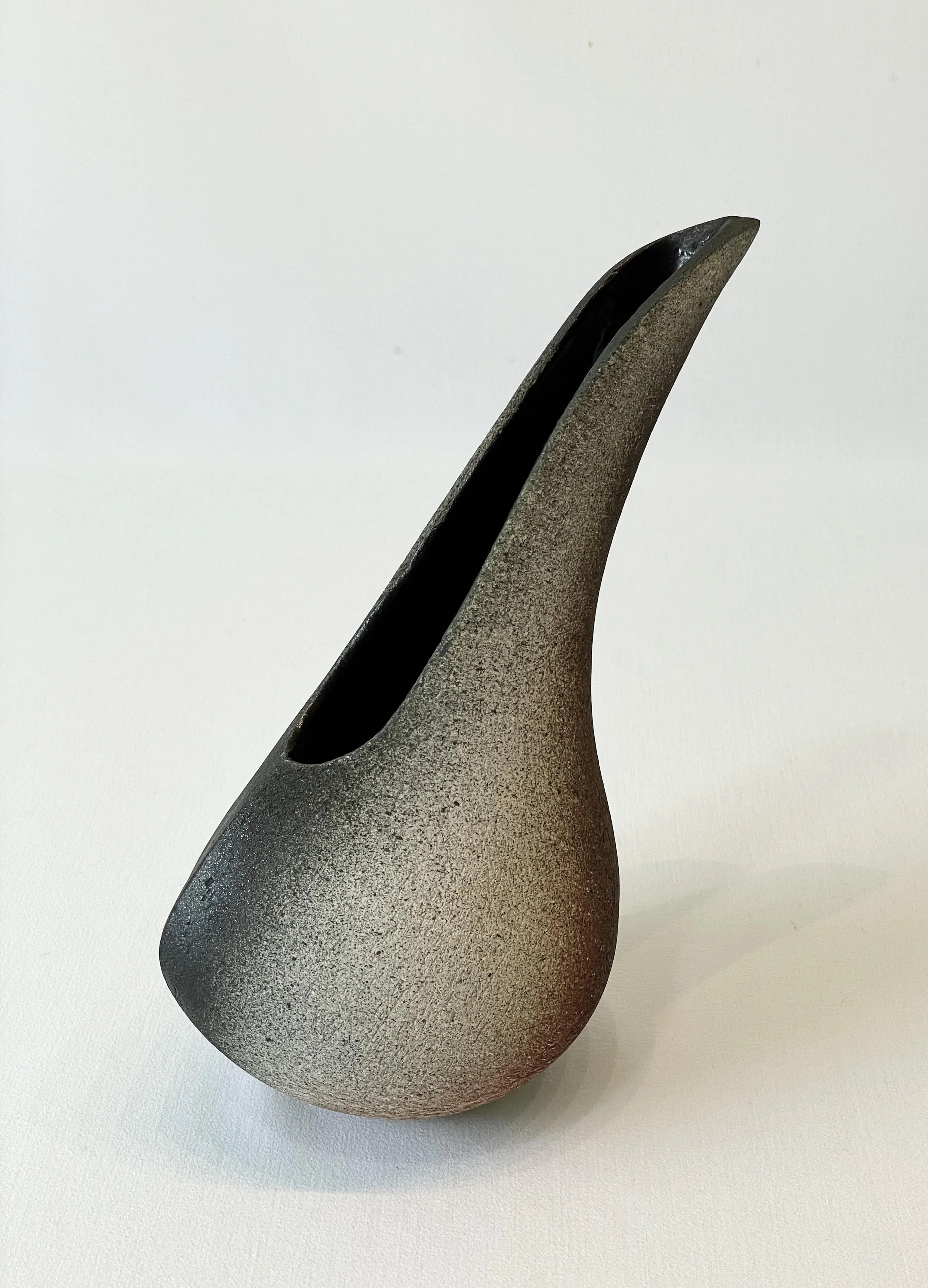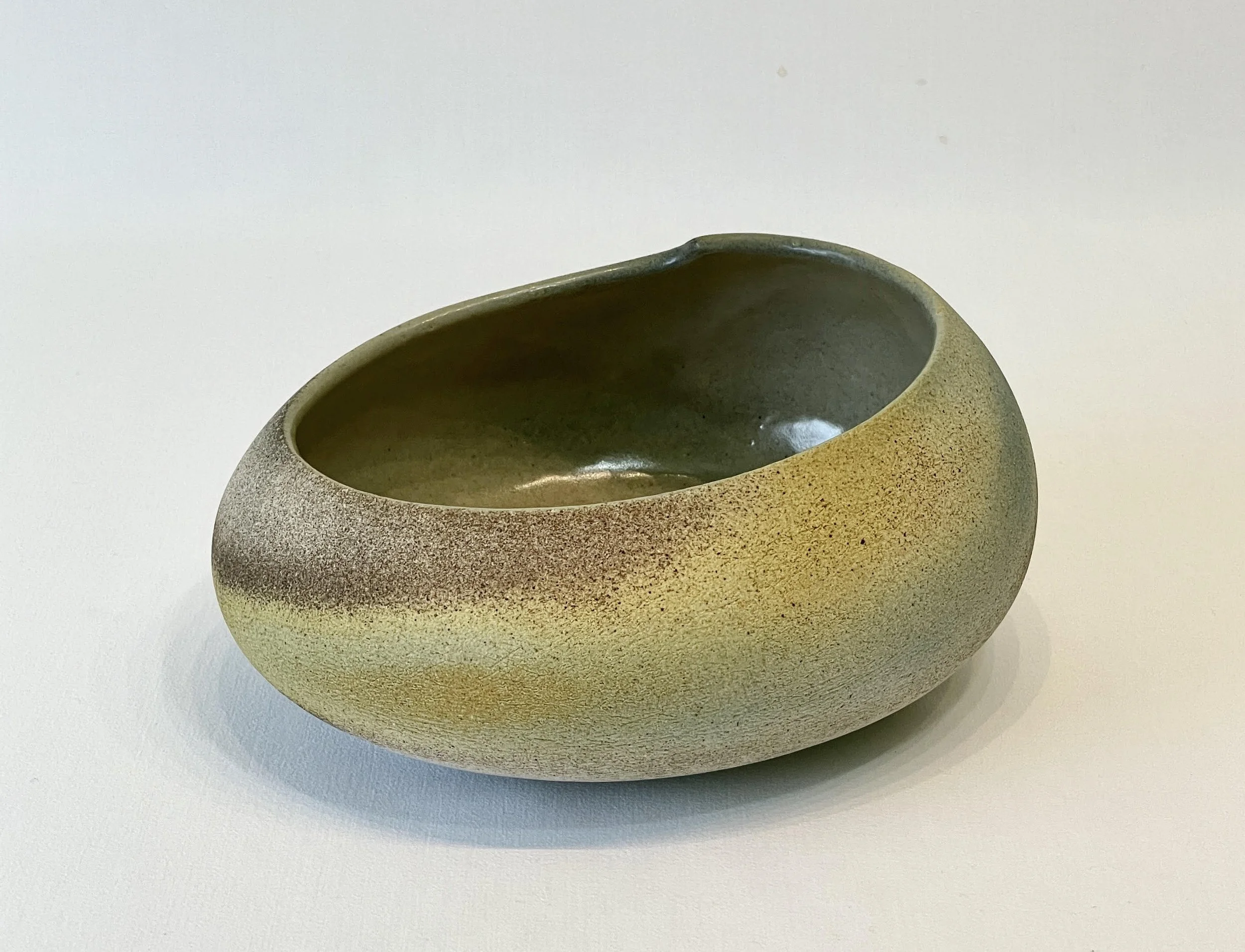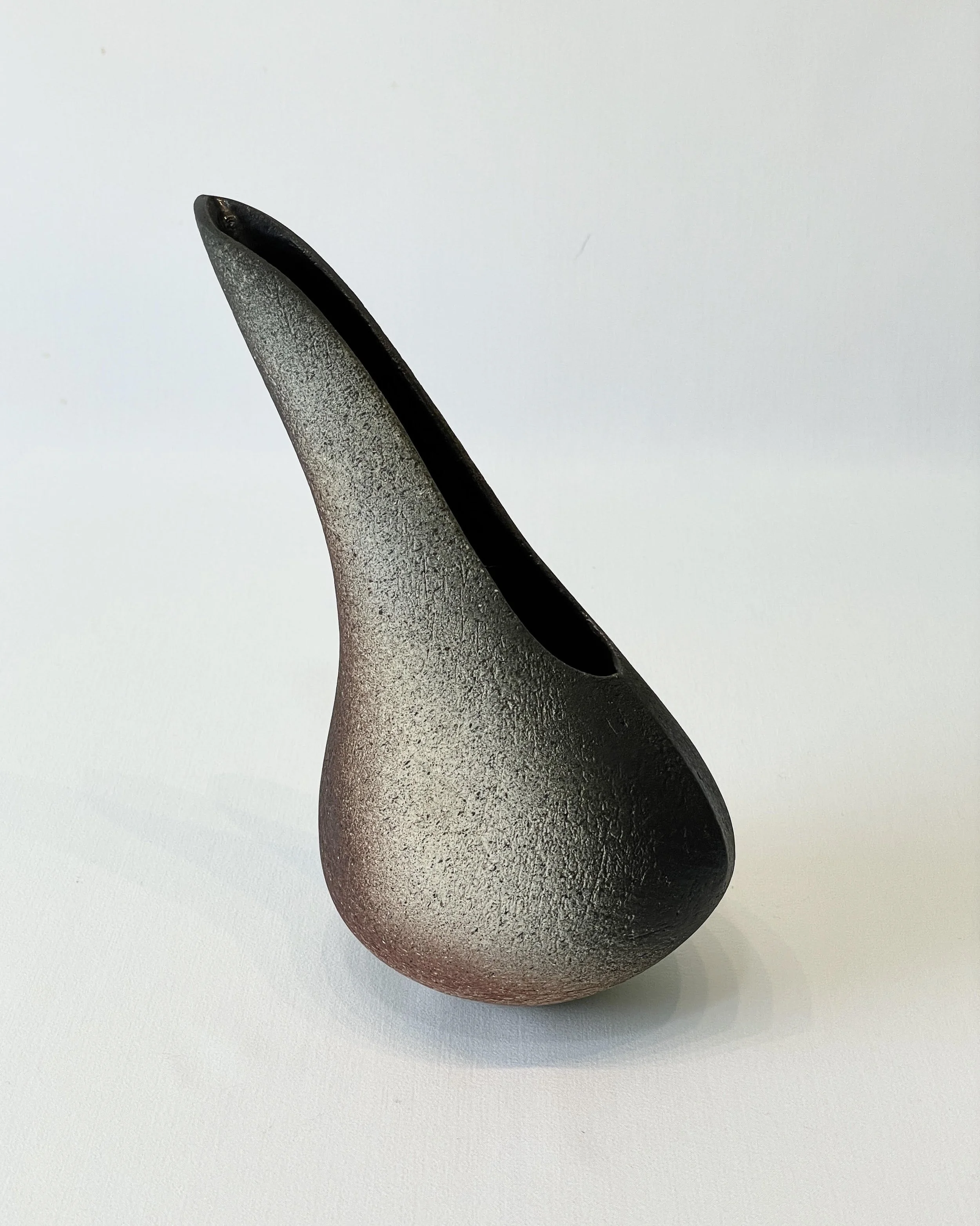 The beautiful red-gold finish on this “Avian” series piece was achieved by spraying several layers of matte glaze containing carefully researched combinations of metallic oxides, and was fired in oxidation.