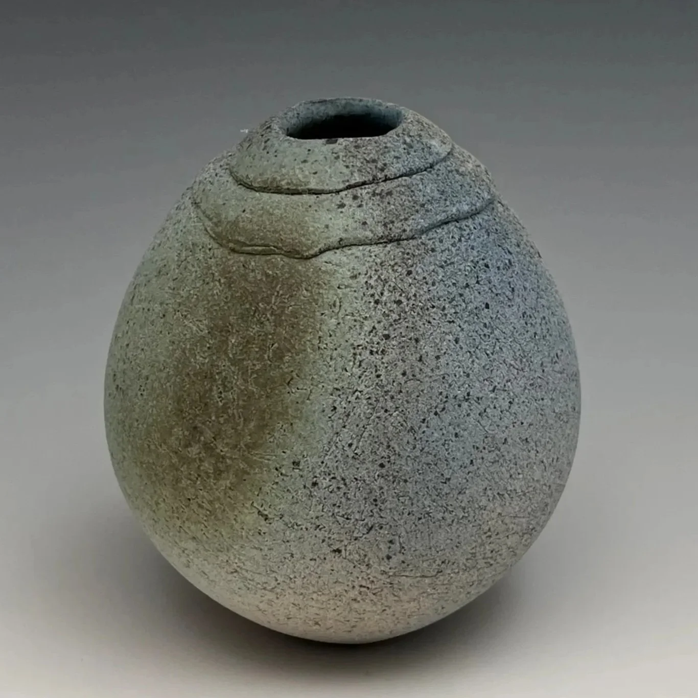 This pot imitates a line of a latitude, but on an angle. Its elegant curves and subtle color offer a sense of calm and fluidity. The soft speckled texture adds an earthy touch, grounding the piece in nature.